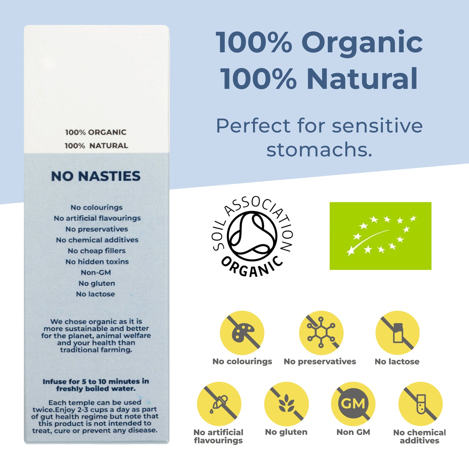 We only blend the finest organic herbs for digestive & gut health. We don't dilute the impact with cheaper & potentially irritating ingredients. All are ingredients are clearly labelled in capitals. Not hiddden in the small print.